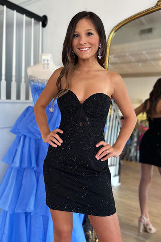 Sparkly Bodycon Lavender Sweetheart Lace Short Homecoming Dresses AB081704