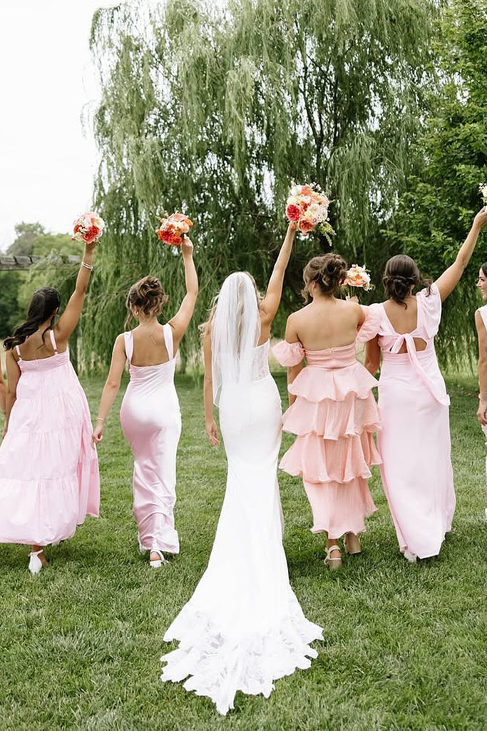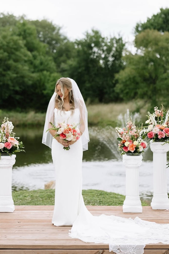 Bohemian Mermaid Scoop Neck Lace Long Wedding Dress with Appliques AB25100601