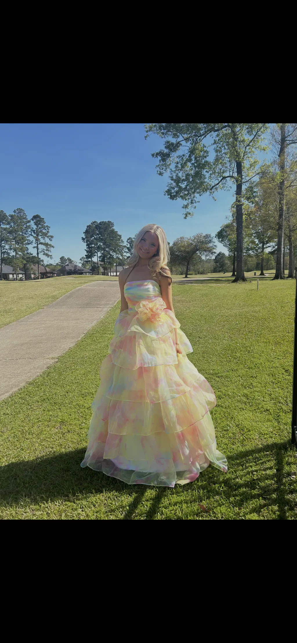 Cute A Line Strapless Floral Printed Tulle Prom Dress AB122703