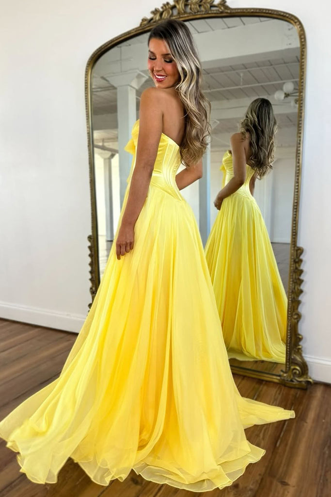 Cute A Line Strapless Light Blue Chiffon Long Prom Dress with Slit AB2622804