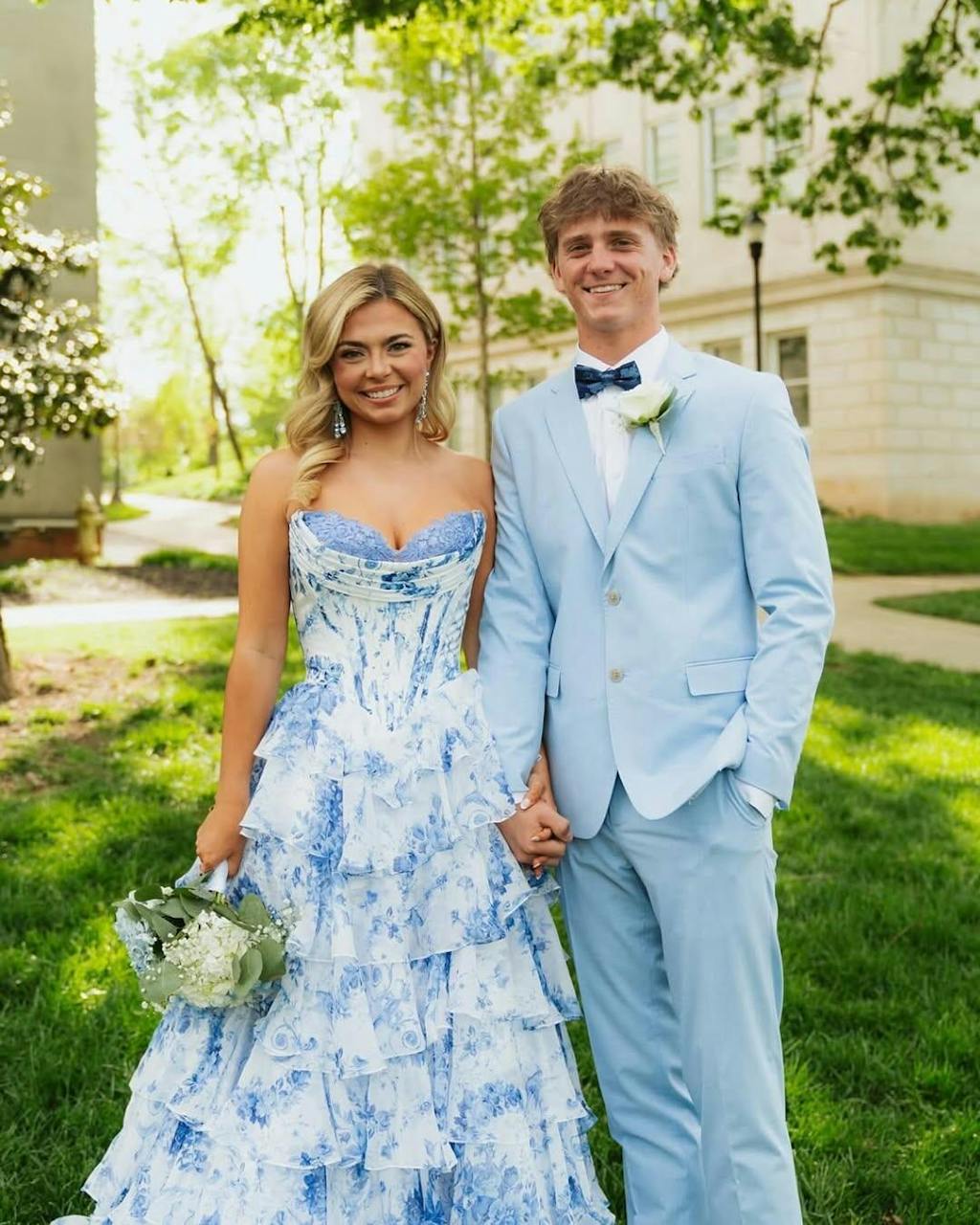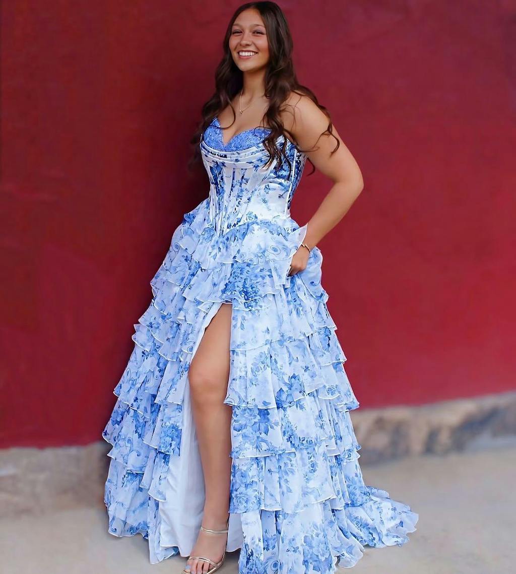 Cute A Line Sweetheart Floral Printed Chiffon Long Prom Dress with Slit AB24120401