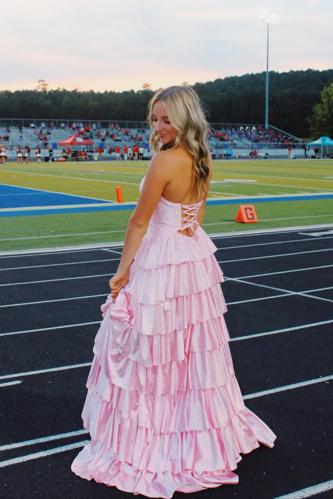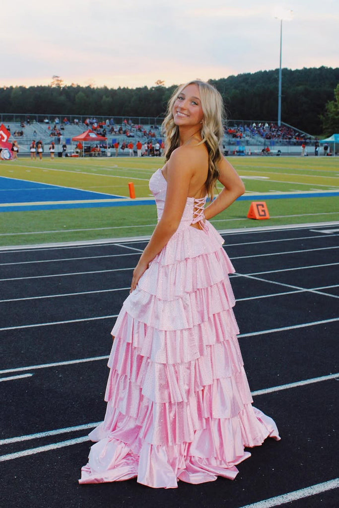 Fairy A Line Sweetheart Keyhole Pink Tiered Prom Dress with Hot Stone AB25092702