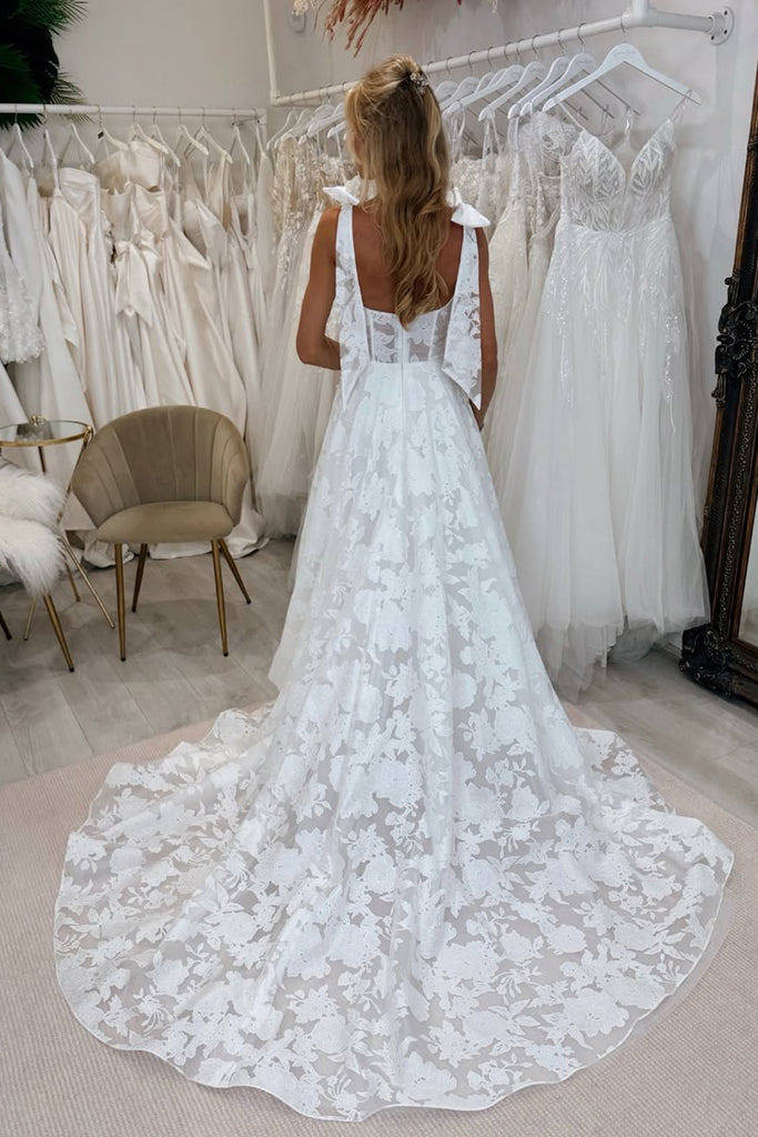 Fashion A Line Square Neck Lcae Wedding Dress AB25092707