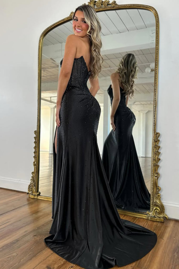 Gorgeous Mermaid Scoop Neck Hof Fix Satin Prom Dress with Slit AB26020606