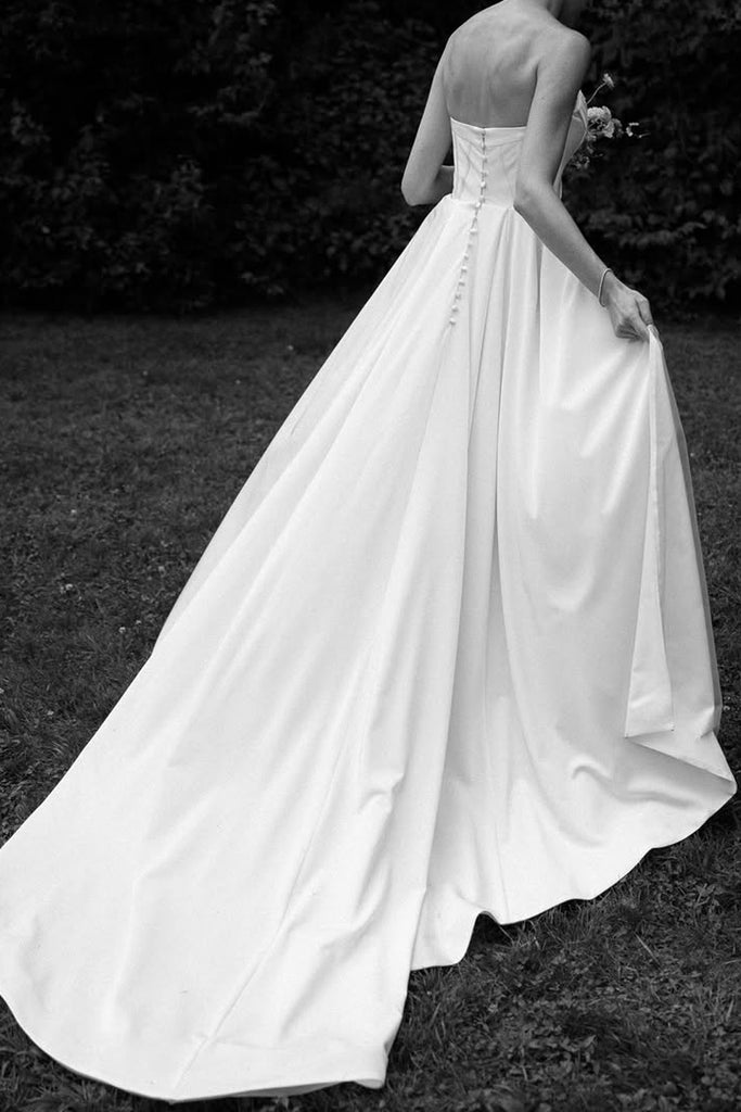 Mermaid Scoop Neck Silk Satin Two Piece Wedding Dress AB25092906