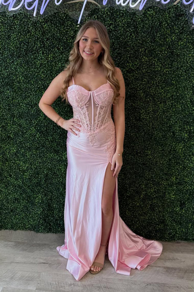 Mermaid Sweetheart Pink Stretch Satin Prom Dress with Slit AB26020607