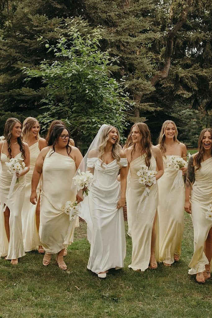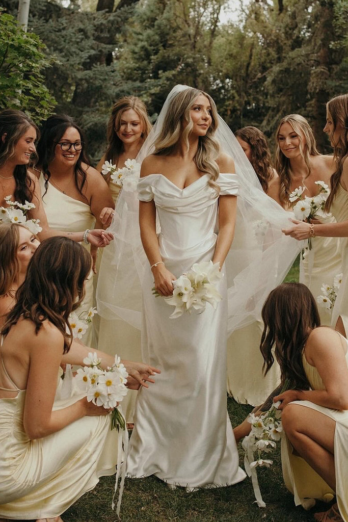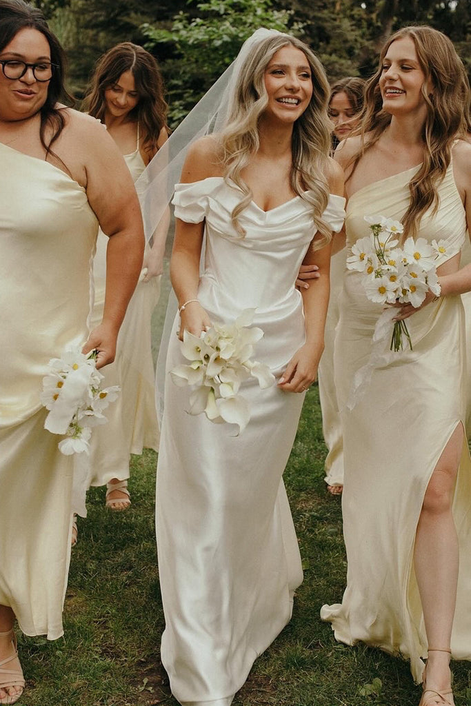 Romantic Mermaid Off the Shoulder Silk Satin Wedding Dress AB25092706